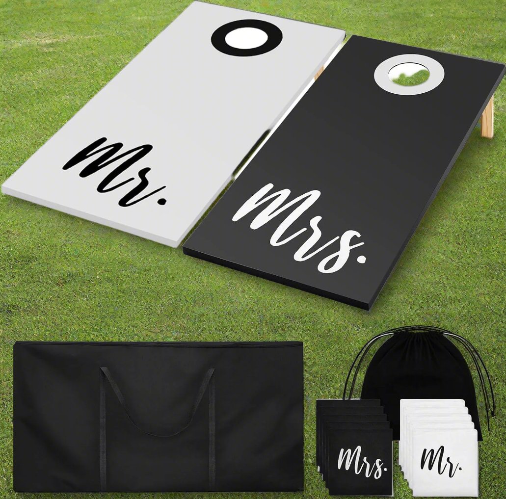 Add our Cornhole Board Game - Wedding Edition to your wedding festivities. Entertain your guests and make fun, lasting memories with the classic wedding themed, interactive Cornhole game. Features Mr. and Mrs. game boards and toss bean bags.