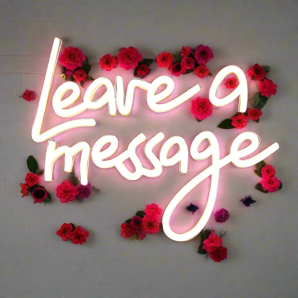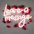 Booking includes neon "Leave a Message" sign and phone instruction sign.
